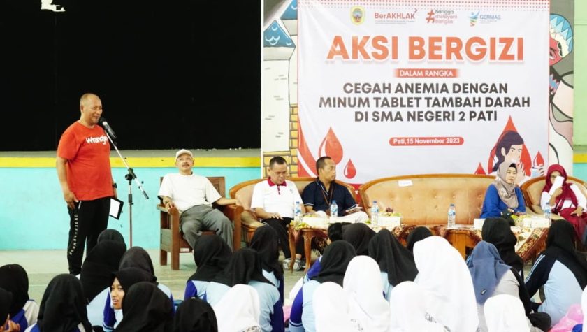 pasfmpati.com, Pati Kota : Pemerintah Kabupaten Pati menyambangi sekolah-sekolah di wilayahnya dengan kegiatan aksi bergizi mencegah anemia di kalangan pelajar putri. Sarapan pagi dan minum tablet tambah darah bersama, menjadi bagian dari kegiatan aksi bergizi di SMA Negeri 2 Pati, Rabu (15/11/20239.